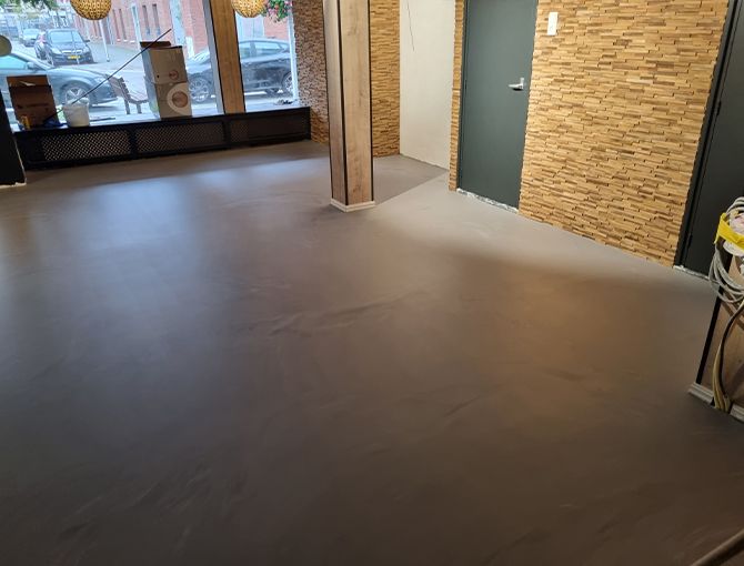 Een PU gietvloer betonlook is een naadloze kunststofvloer met een subtiele betonuitstraling. De vloer wordt opgebouwd uit meerdere lagen polyurethaan en afgewerkt met een natuurlijke kleurschakering die lijkt op echt beton. Hierdoor ontstaat een moderne, rustige vloer die slijtvast en onderhoudsvriendelijk is. PU gietvloeren zijn licht elastisch, waardoor ze comfortabel aanvoelen en geschikt zijn voor dagelijks gebruik in woningen en kantoren.